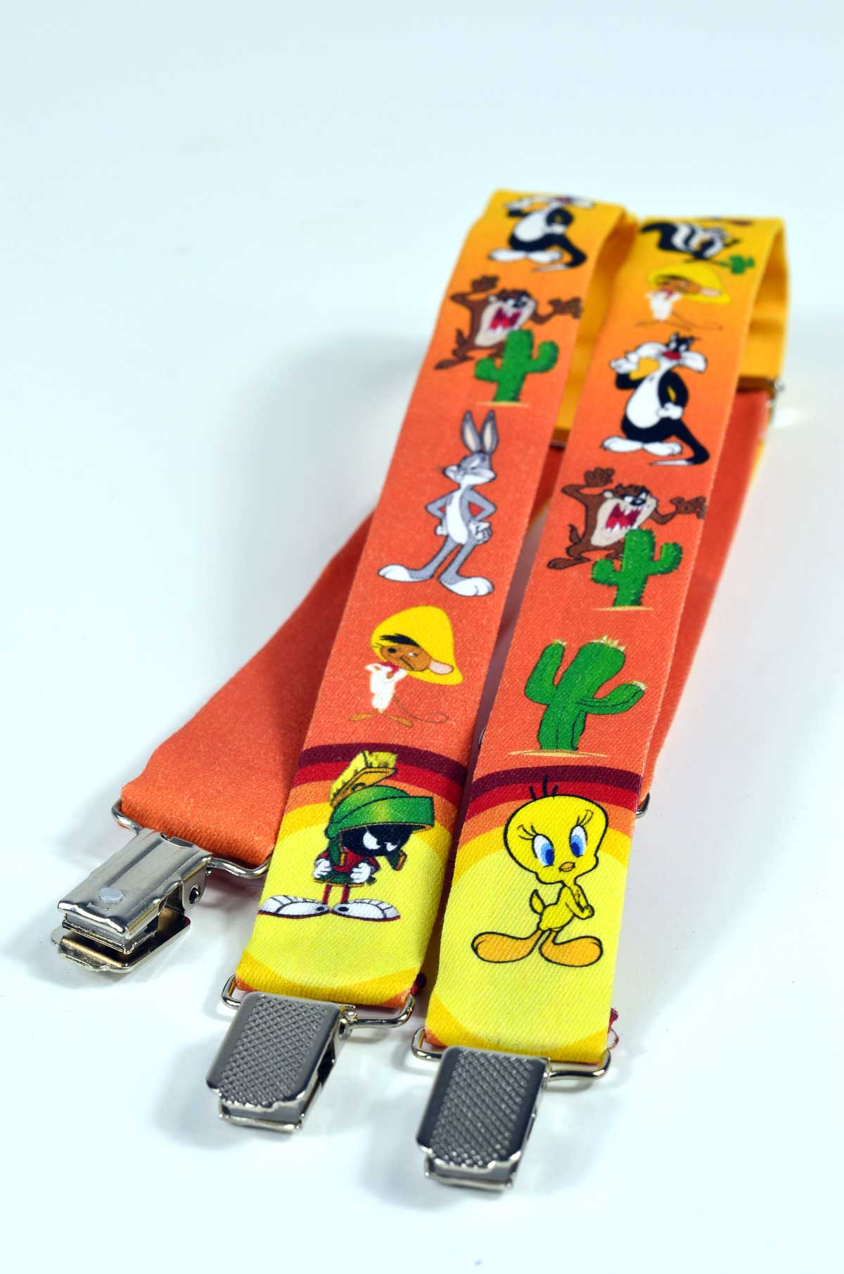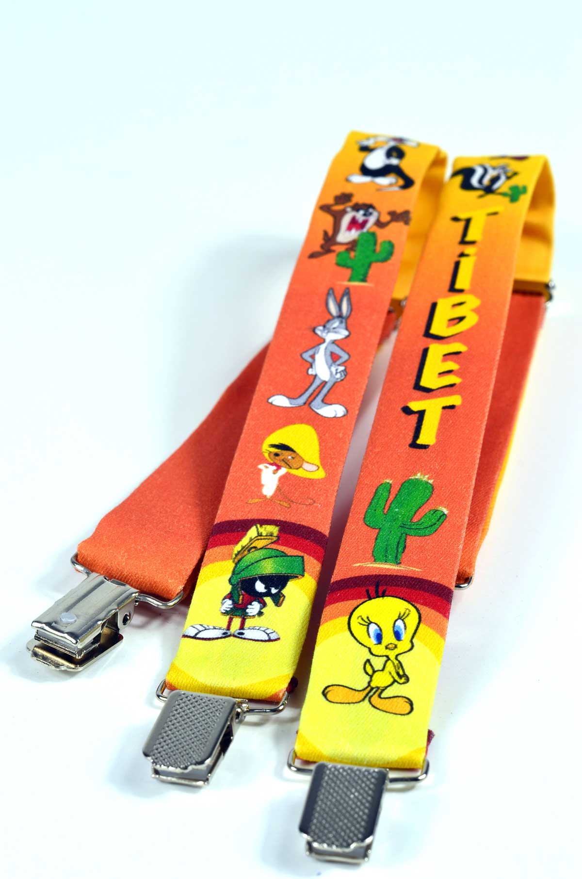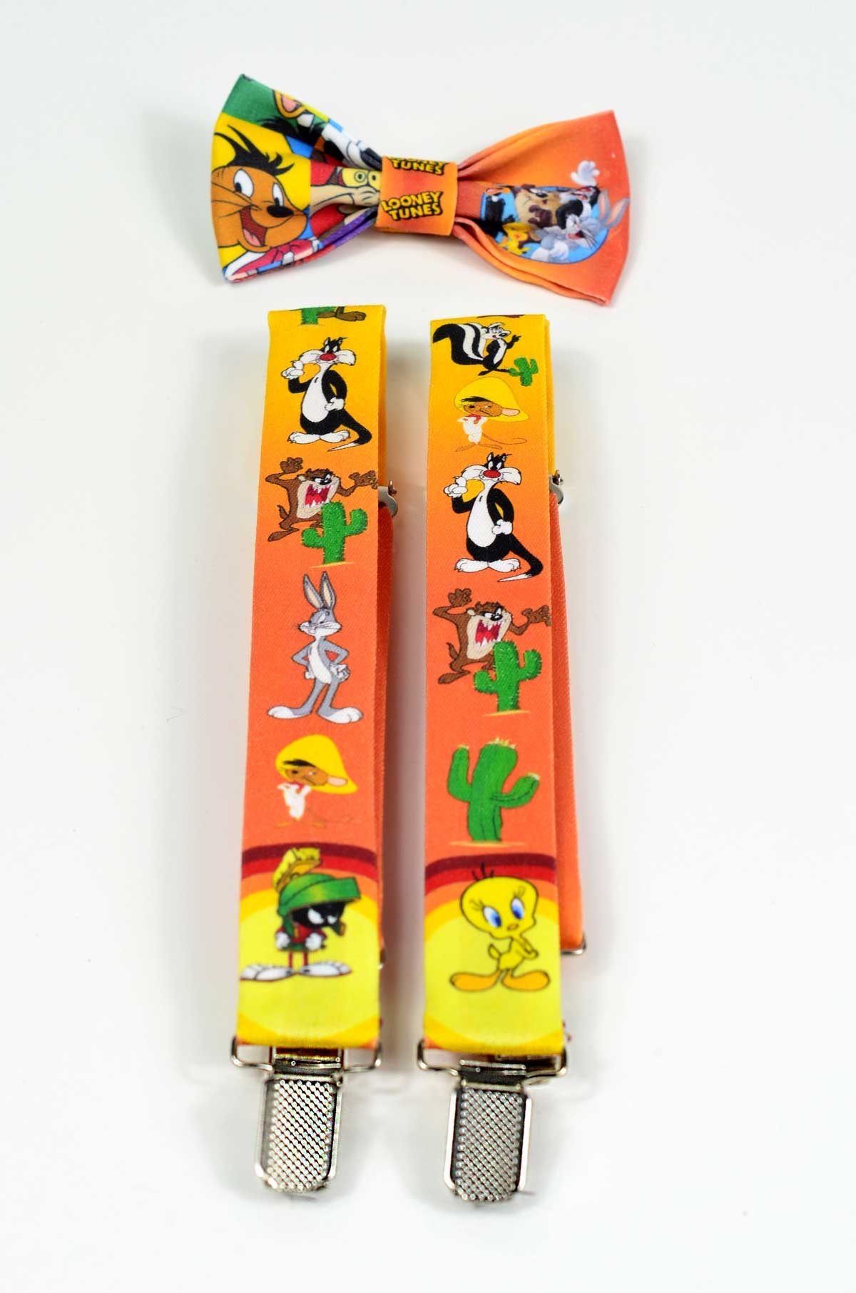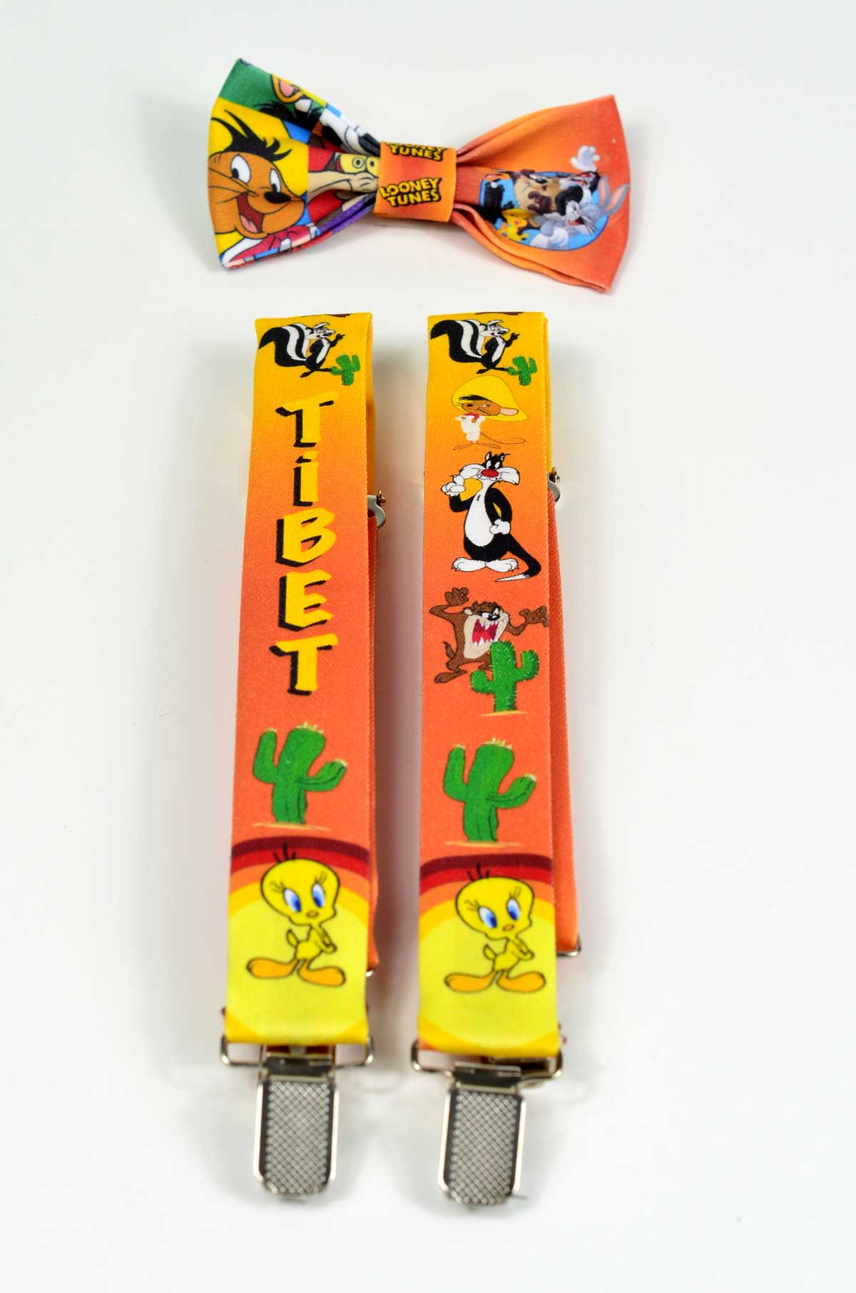 Looney Tunes Temalı Papyon ve Pantolon Askısı  baskılı isime özel üretim erkek çocuk papyon ve pantolon askısı