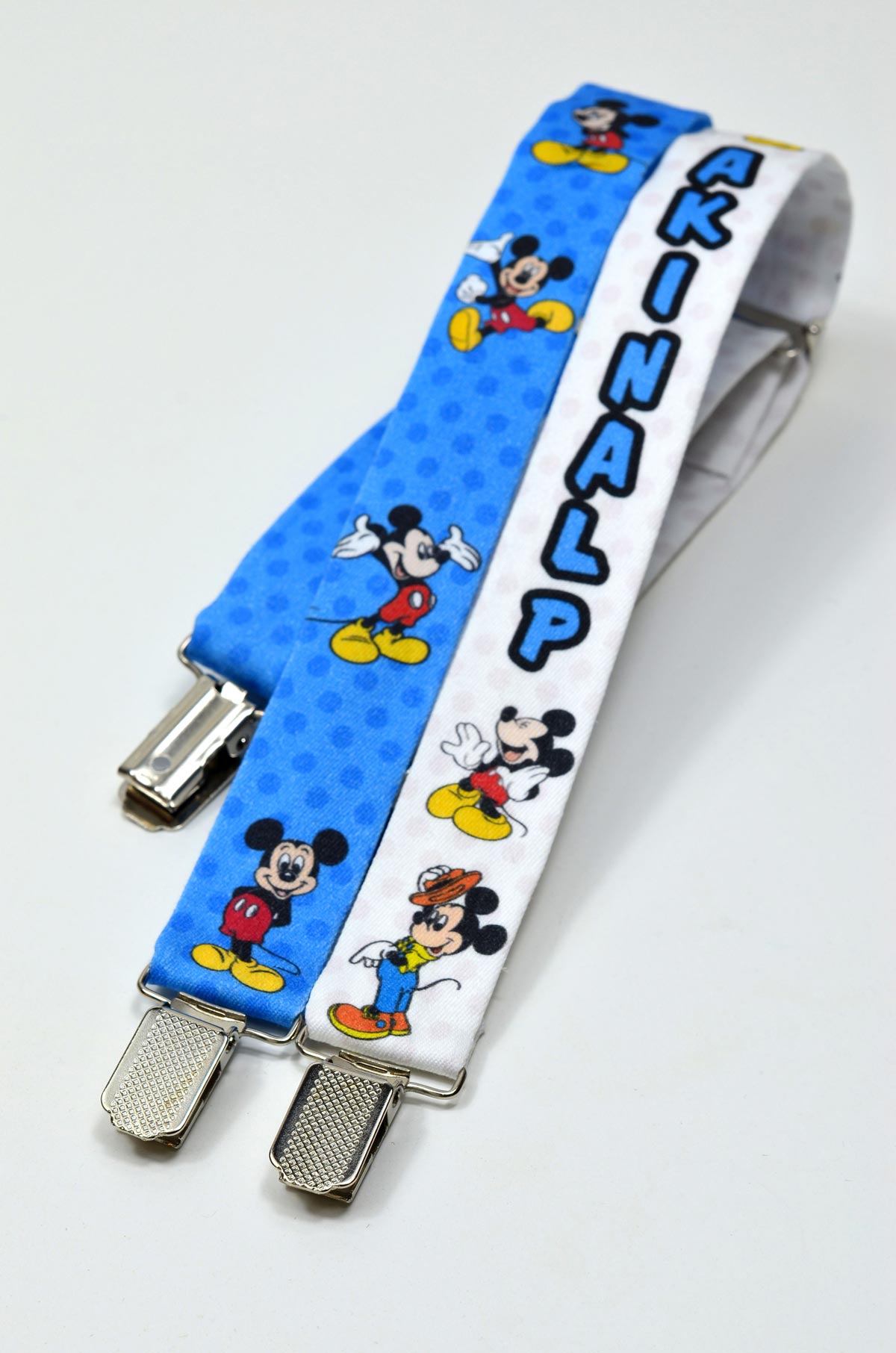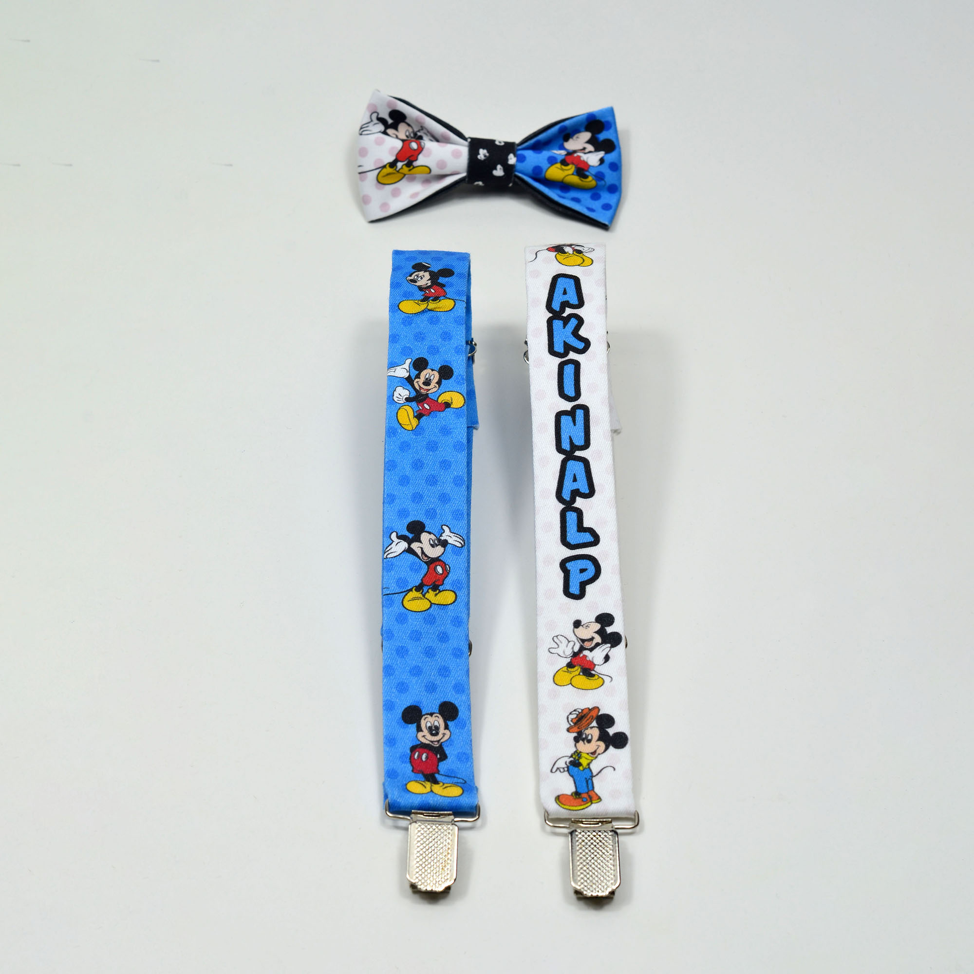 Mickey Mouse Temalı Papyon ve Pantolon Askısı baskılı isime özel üretim erkek çocuk papyon ve pantolon askısı