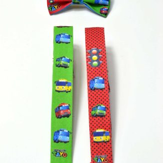 Tayo Temalı Papyon ve Pantolon Askısı baskılı isime özel üretim erkek çocuk papyon ve pantolon askısı